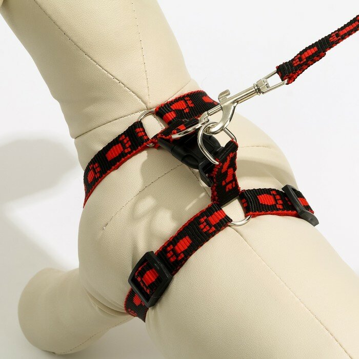 Купить Комплект "Большая лапа", ширина 1,5 см, поводок 120 см, шлейка 28-42 см, красно-чёрный