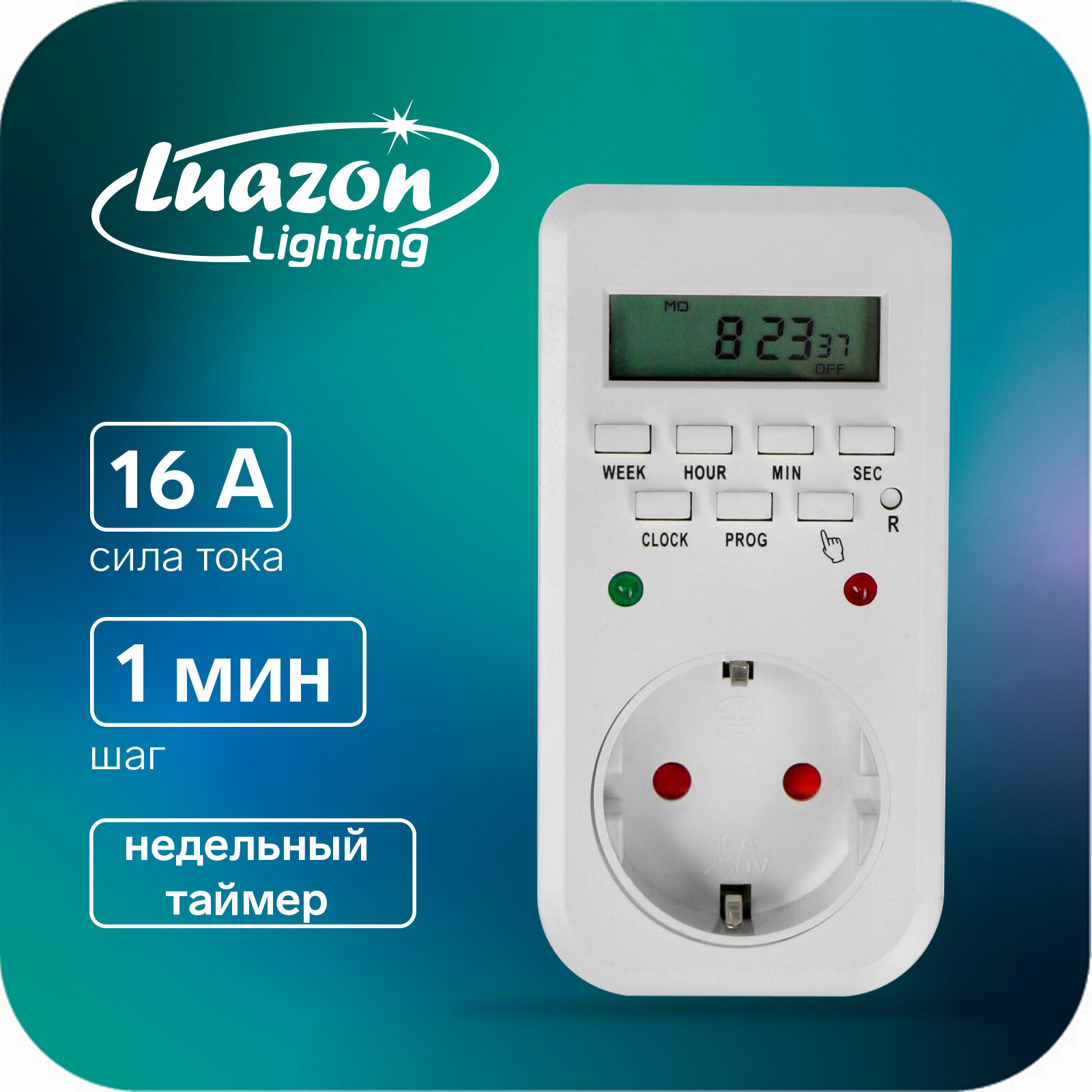 Купить Розеточный электронный таймер недельный Luazon Lighting, 16A, шаг 1 мин, 220 В