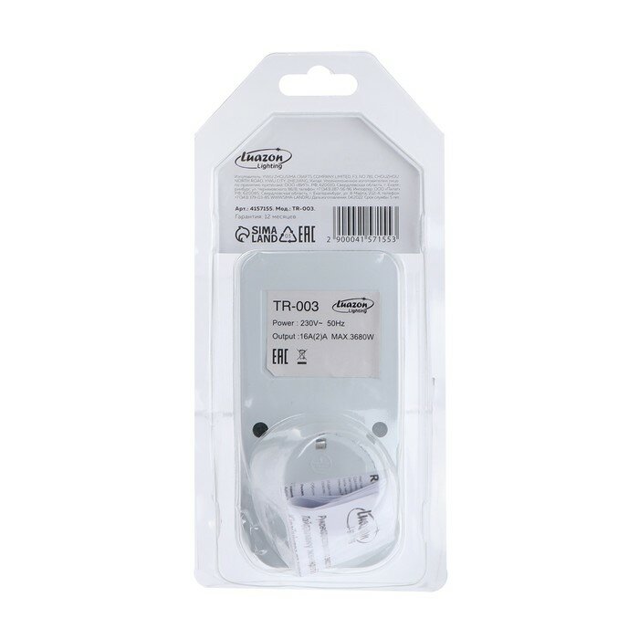 Ниже Вы можете прочитать отзывы на Luazon Lighting Розеточный электронный таймер недельный Luazon Lighting, 16A, шаг 1 мин, 220 В, ознакомится с подробными характеристиками, посмотреть интересные обзоры и фотографии на Luazon Lighting Розеточный электронный таймер недельный Luazon Lighting, 16A, шаг 1 мин, 220 В.
