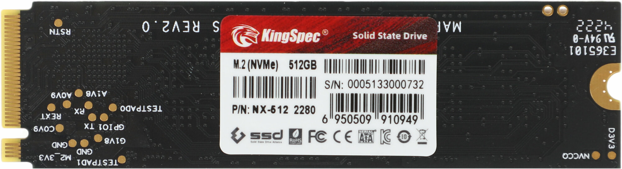 KingSpec M.2 2280 NVMe SSD 512 ГБ M.2 PCIe 3.0x4 SSD, 3D NAND флэш - память до 3400 МБ / с