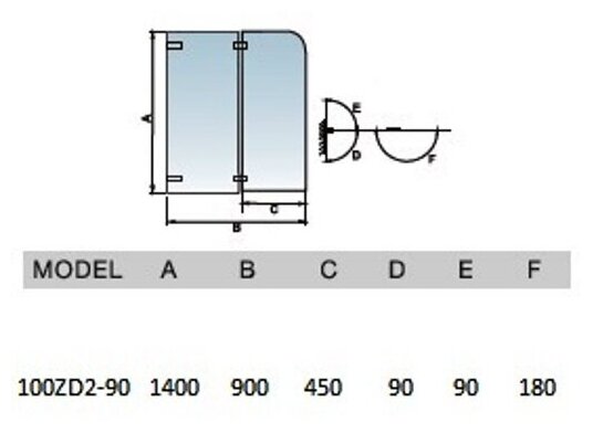 Шторка для ванны WeltWasser WW100 100ZD2-90 90x140