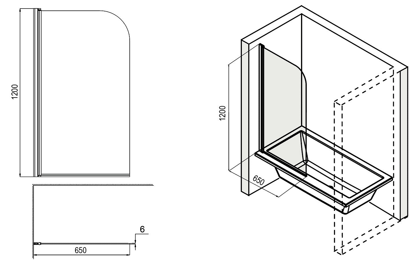 Шторка на ванну Aquanet Practic AE10-B-165H150U-CP, прозрачное стекло