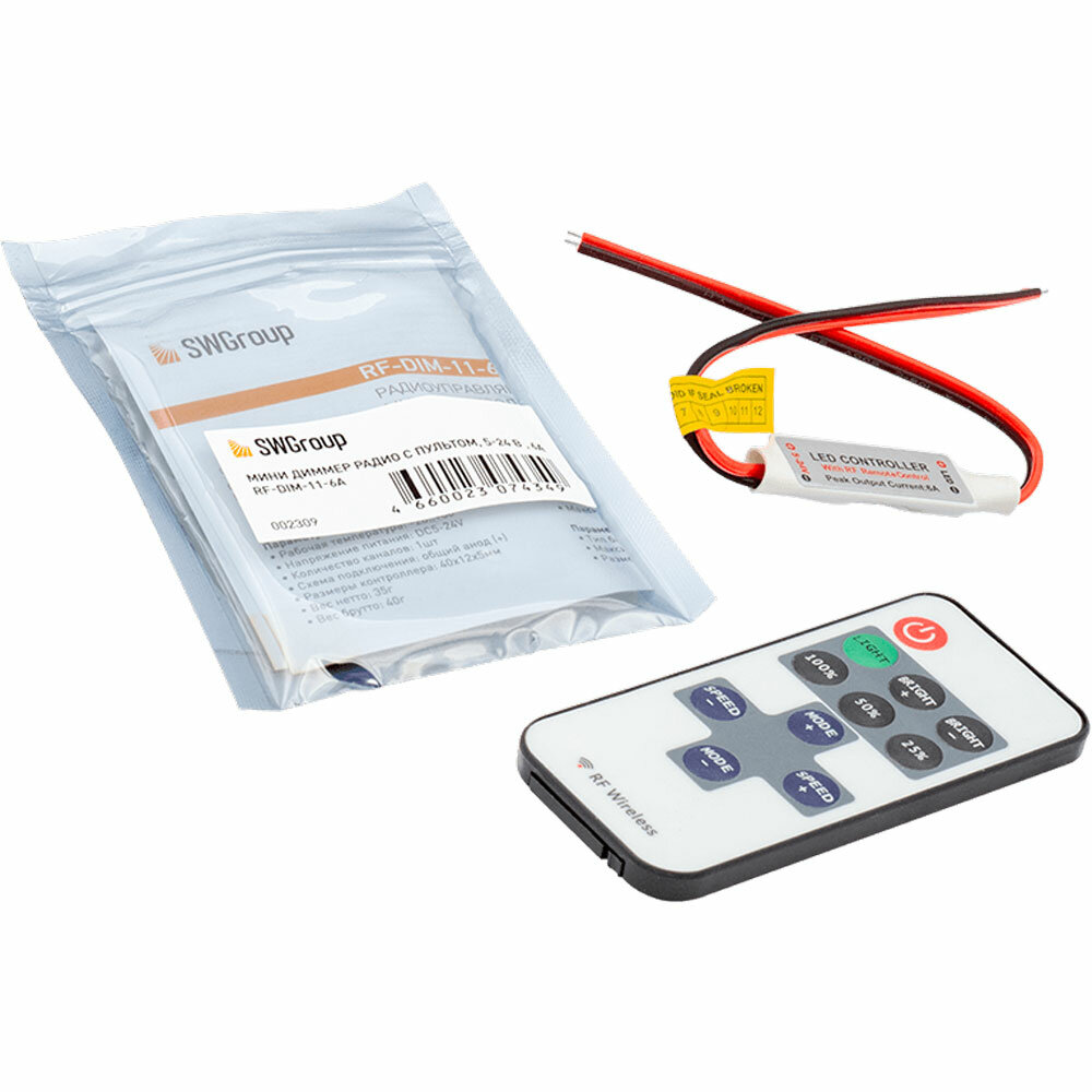 SWG Контроллер SWG "RF-DIM-11-6A" для светодиодной монохромной ленты и модулей, 6А, 12~24В интересное:
