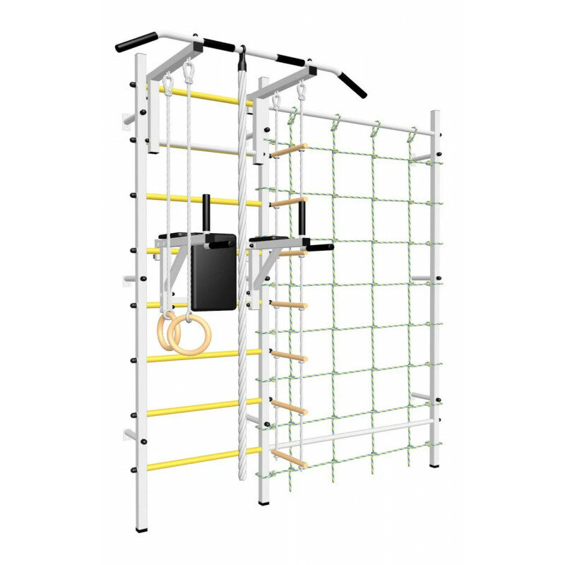 Шведская стенка Sv Sport усиленная 610ж (ступени Желтые / Турник стандарт к ШС / Канат, кольца, лестница / Брусья Sv Sport к ШС / Комплект с канатным лазом к ШС)