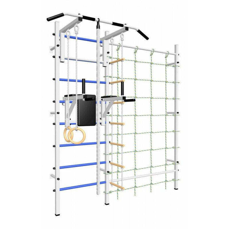 Шведская стенка Sv Sport усиленная 610с (ступени Синие / Турник стандарт к ШС / Канат, кольца, лестница / Брусья Sv Sport к ШС / Комплект с канатным лазом к ШС)