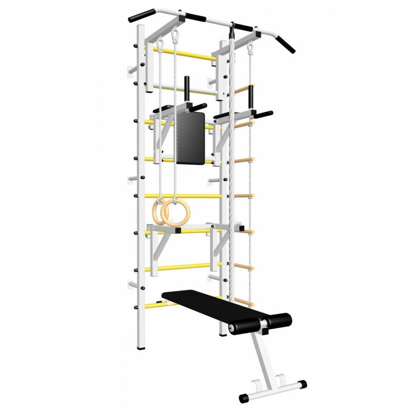 Шведская стенка Sv Sport усиленная 608ж (ступени Желтые / Турник стандарт к ШС / Канат, кольца, лестница / Брусья Sv Sport к ШС / Скамья для пресса и жима к ШС / Стойка под штангу к ШС)