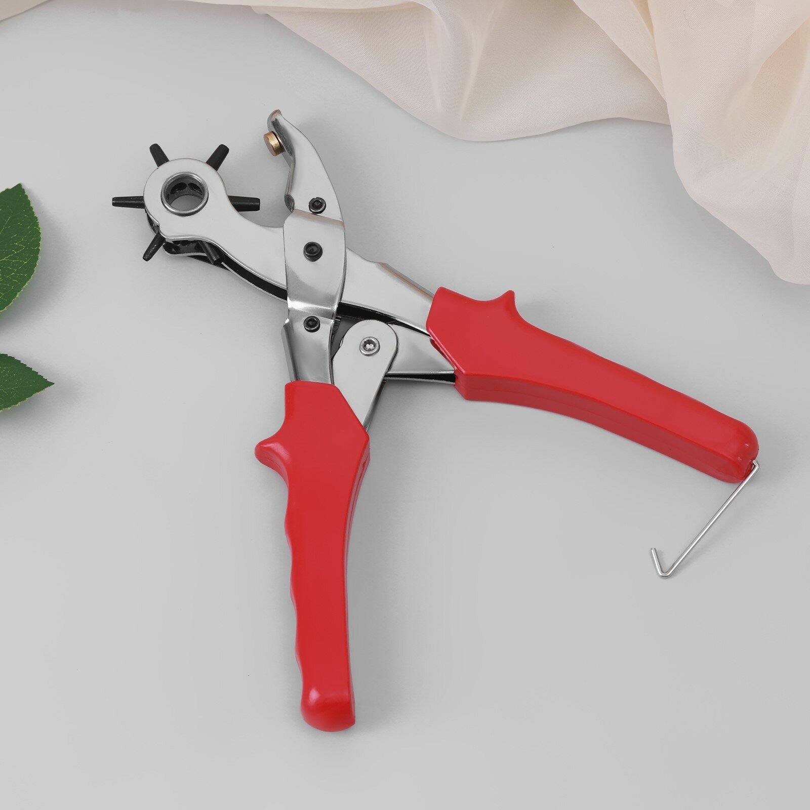 Щипцы-пробойник, с прорезиненными ручками, 25 х 9 см, цвет серебряный/красный