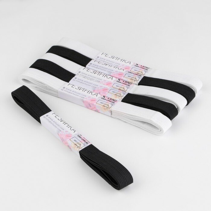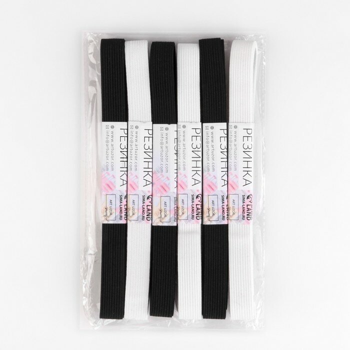 Купить Резинки бельевые, 15 мм, 2 ± 0,5 м, 6 шт, цвет белый/чёрный