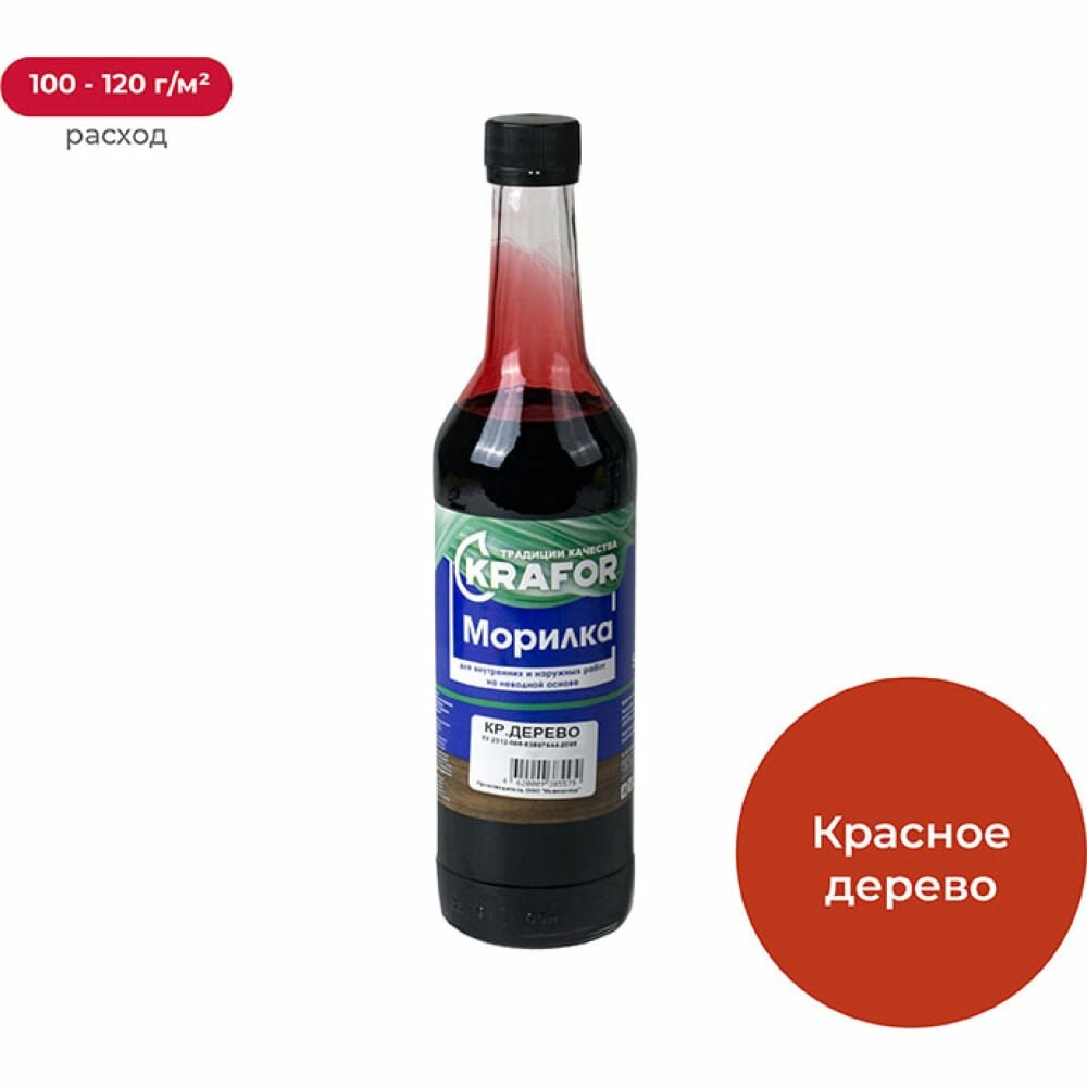 Континенталь Морилка неводная Krafor, для тонирования и защиты деревянных изделий, 0,5 л, красное дерево