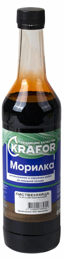 Континенталь Морилка неводная Krafor, для тонирования и защиты деревянных изделий, 0,5 л, лиственница