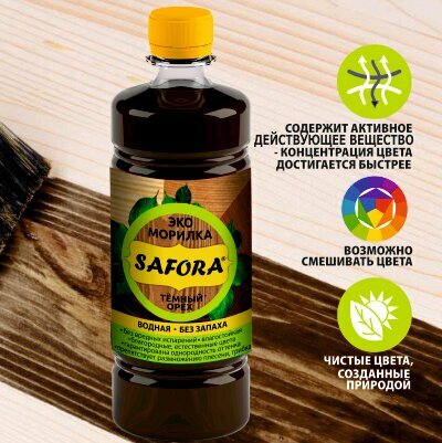 Морилка для дерева водная SAFORA, цвет тёмный орех, 500мл интересное: