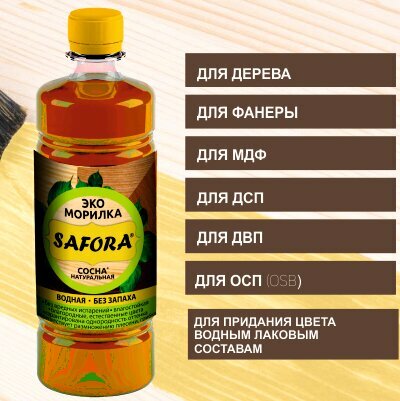 Морилка для дерева водная SAFORA, цвет натуральная сосна, 500мл интересное: