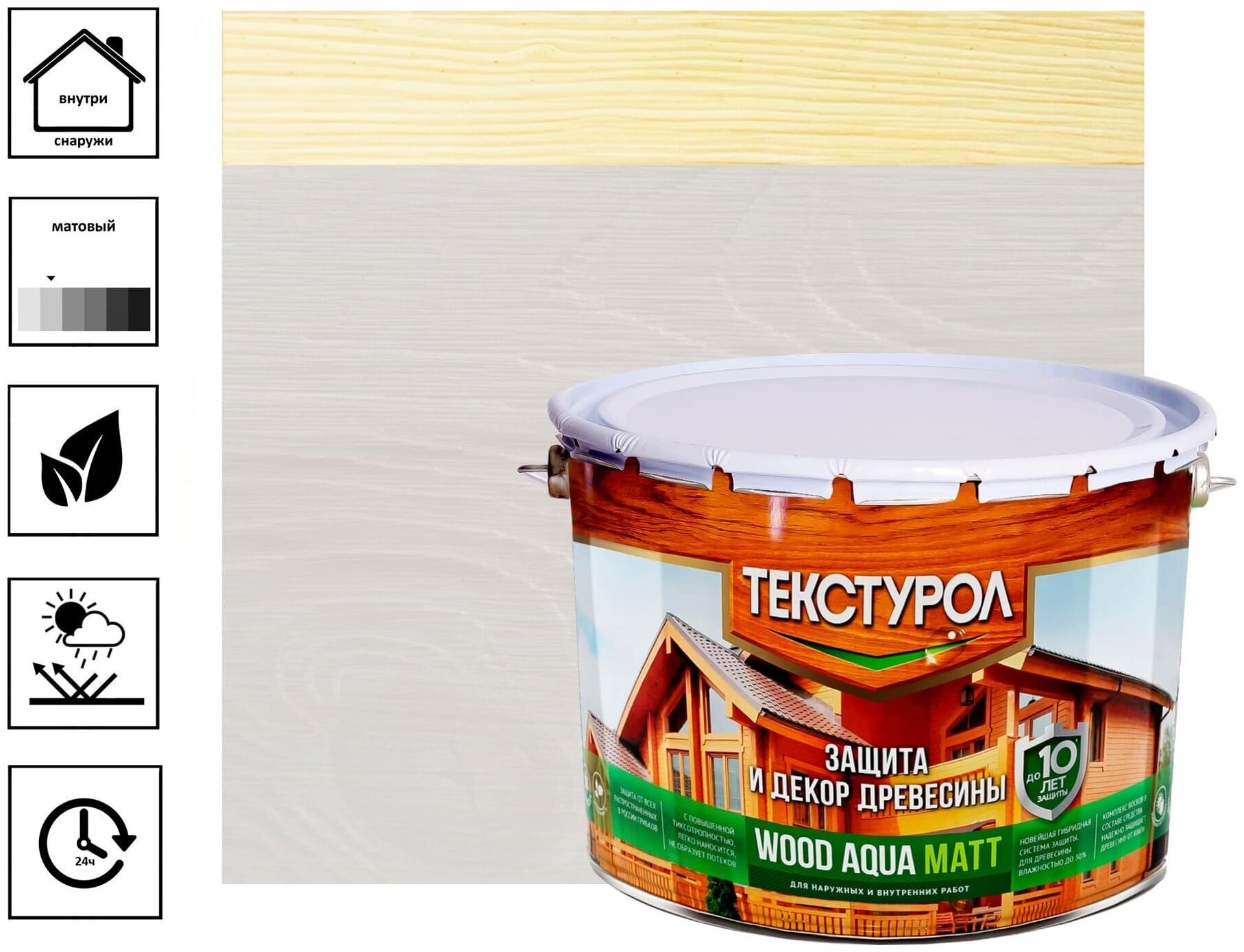 Текстурол WOOD AQUA MATT деревозащитное средство на вод. основе Белый 10л Лк-00008236