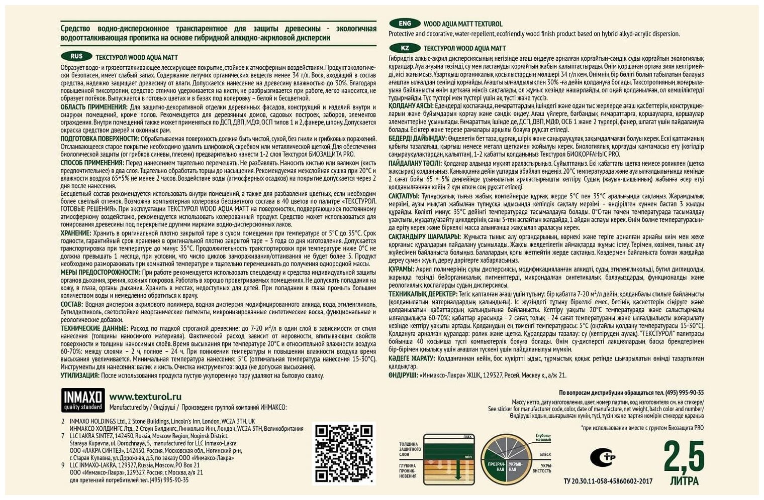 Текстурол WOOD AQUA MATT деревозащитное средство на вод. основе Тик 2,5л