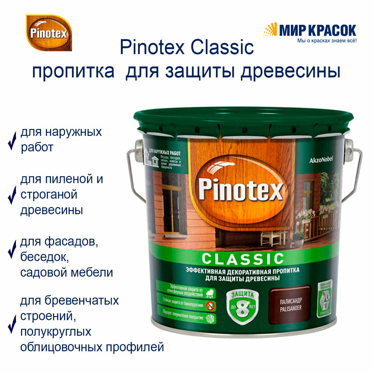 PINOTEX CLASSIC пропитка декоративная для защиты древесины до 8 лет, палисандр (2,7л)
