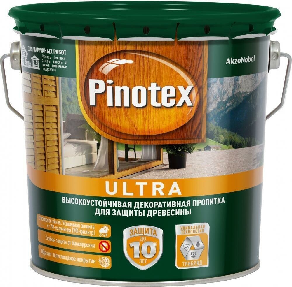 Пропитка декоративная для защиты древесины Pinotex Ultra AWB полуглянцевая сосна 2,5 л