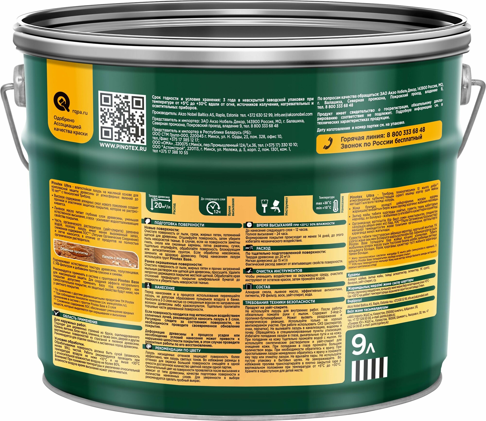 Пропитка для дерева Пинотекс Ультра ( 9 л) сосна (зелёная банка, Россия)