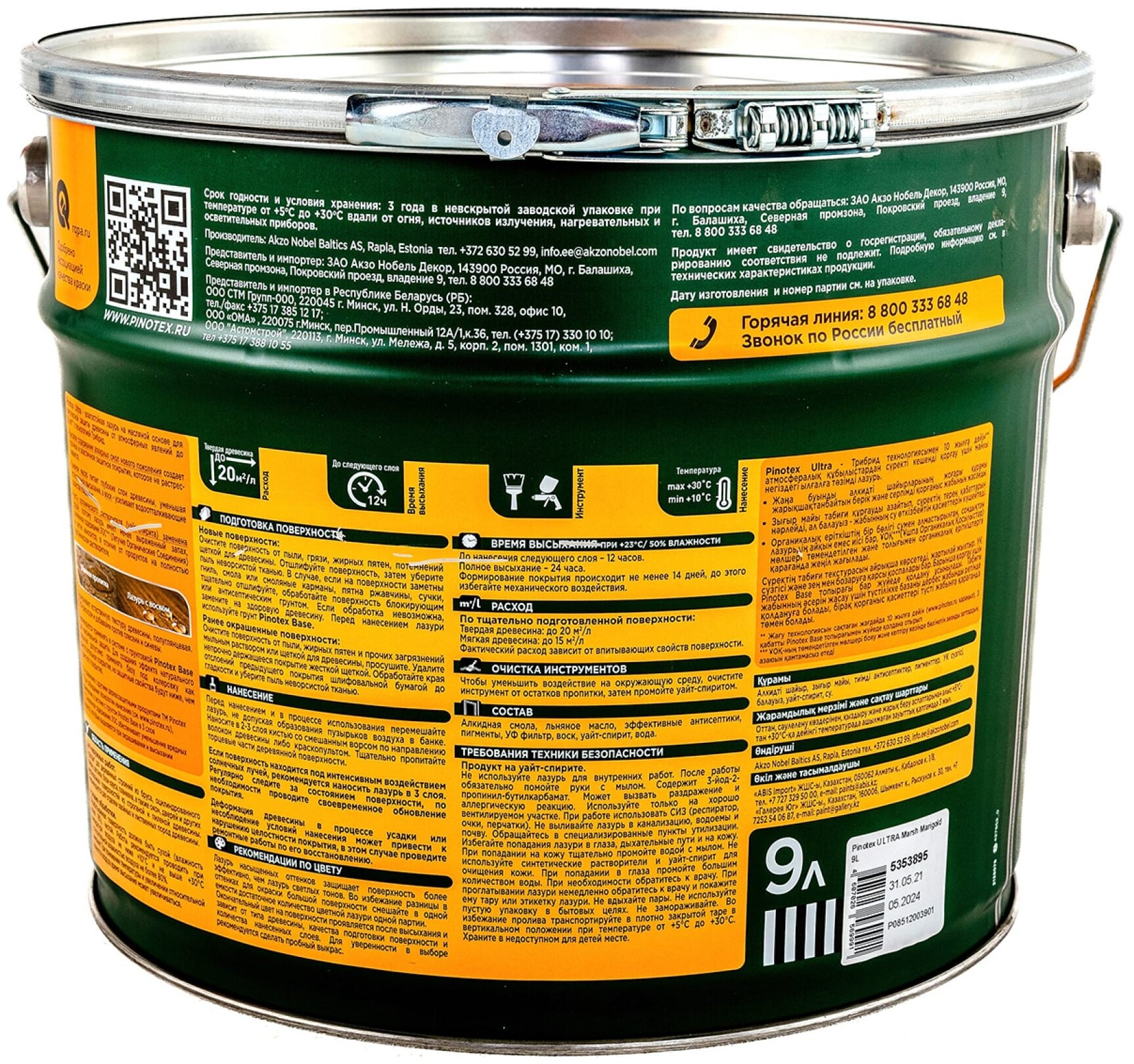 Пропитка для дерева Пинотекс Ультра ( 9 л) сосна (зелёная банка, Россия)