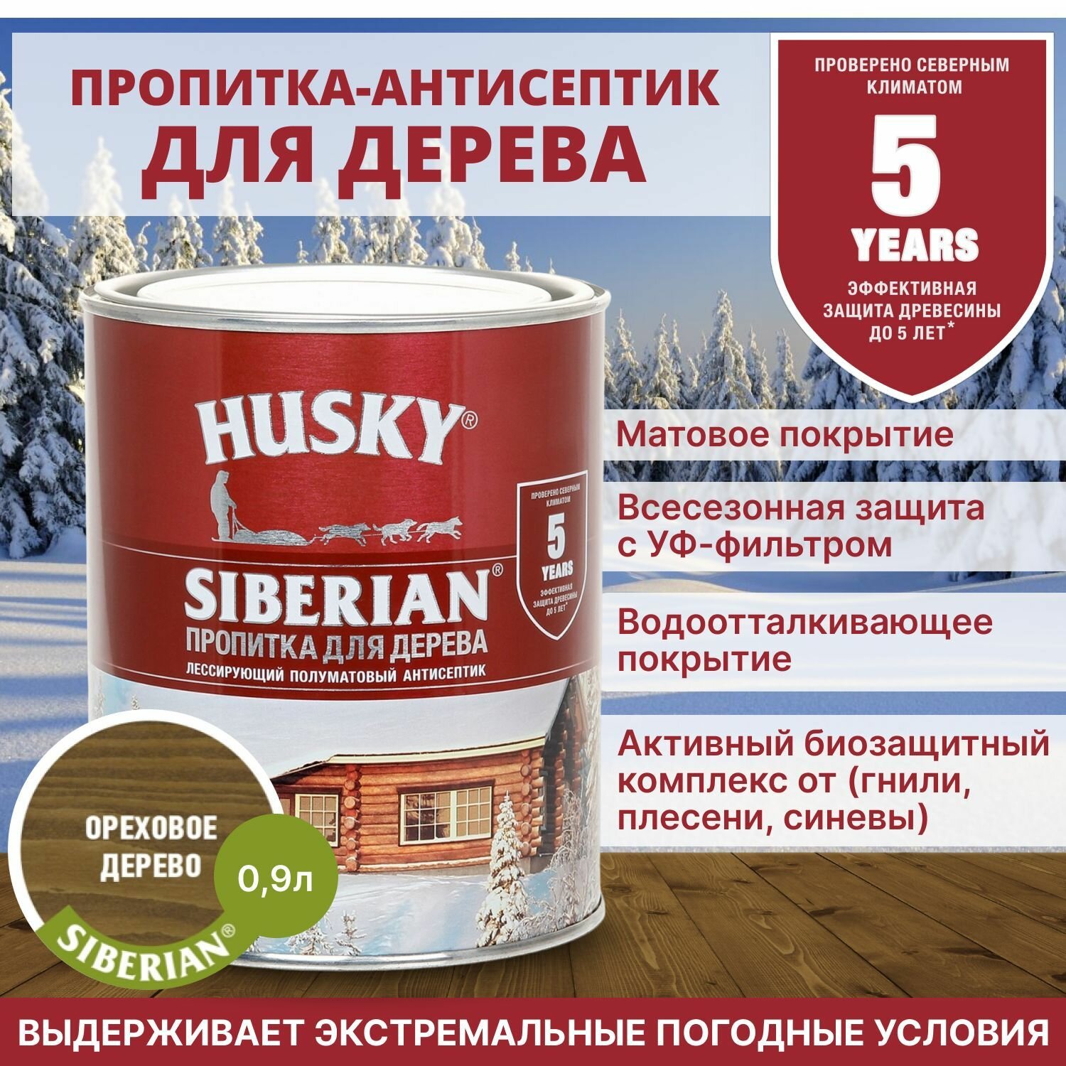 Антисептик Husky Siberian полуматовый, ореховое дерево 0,9 л интересное:
