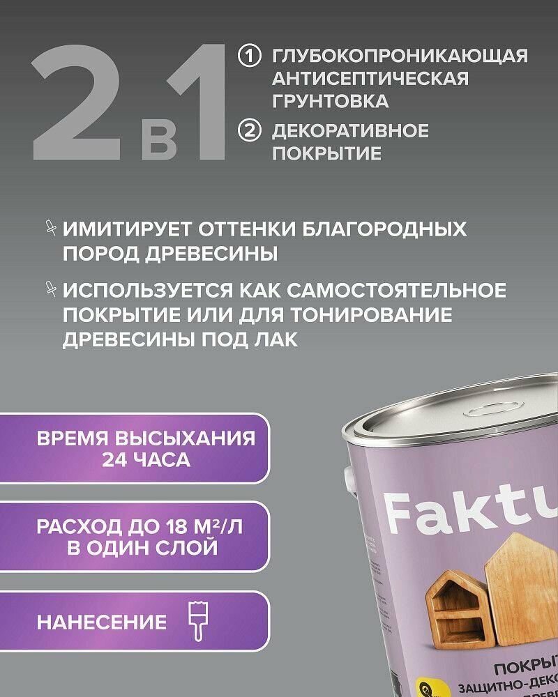 Faktura / Фактура покрытие (2.5 л) защитно-декоративное с льняным маслом, ионами серебра, тик