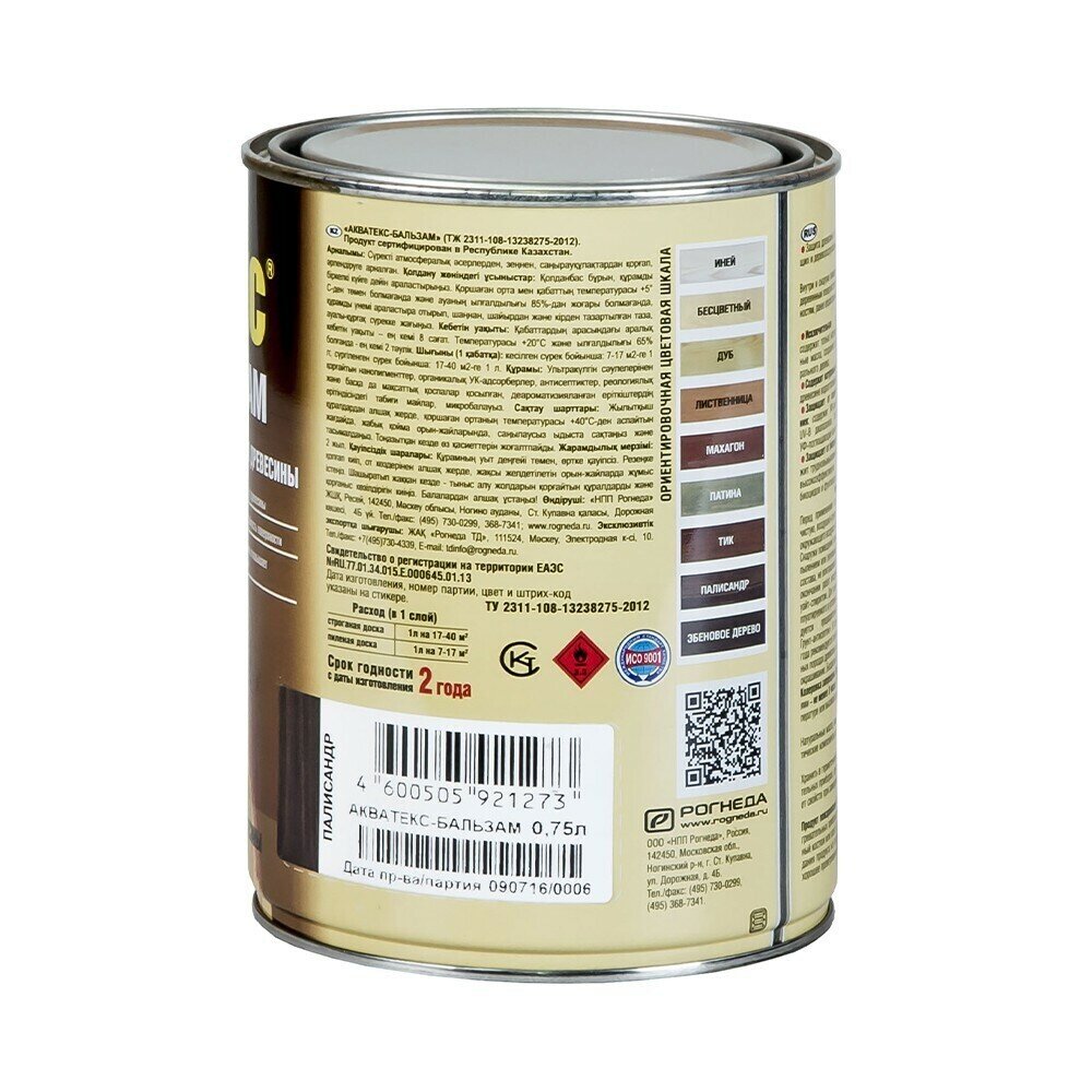 Защитно-декоративное покрытие акватекс бальзам (палисандр / 0.75л.)