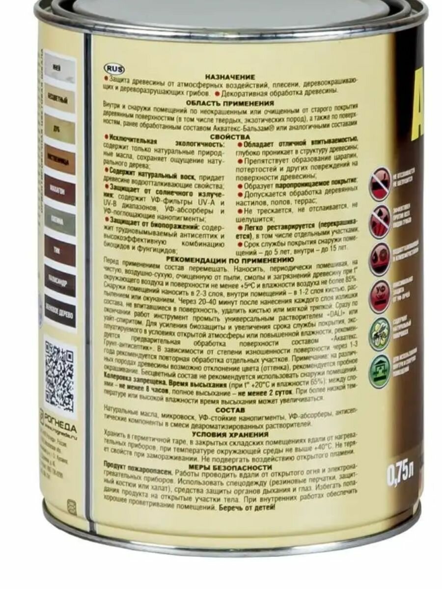 Масло для дерева акватекс бальзам 0,75л лиственница, арт.92123