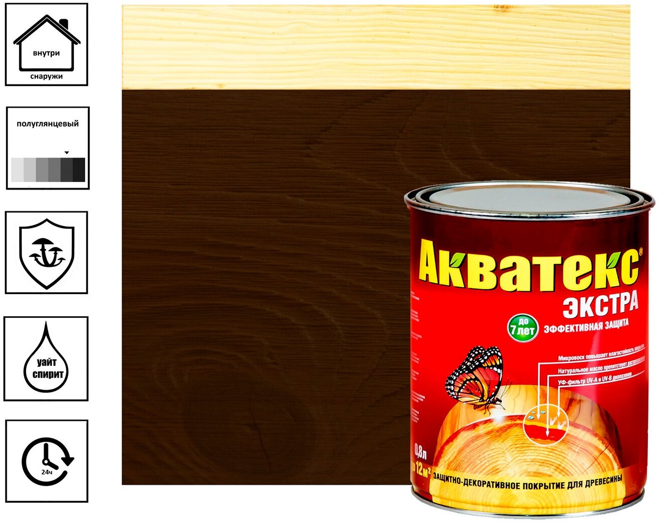 Антисептик Акватекс Экстра 0.8л Орех Глянцевый для Внутренних и Наружных Работ.