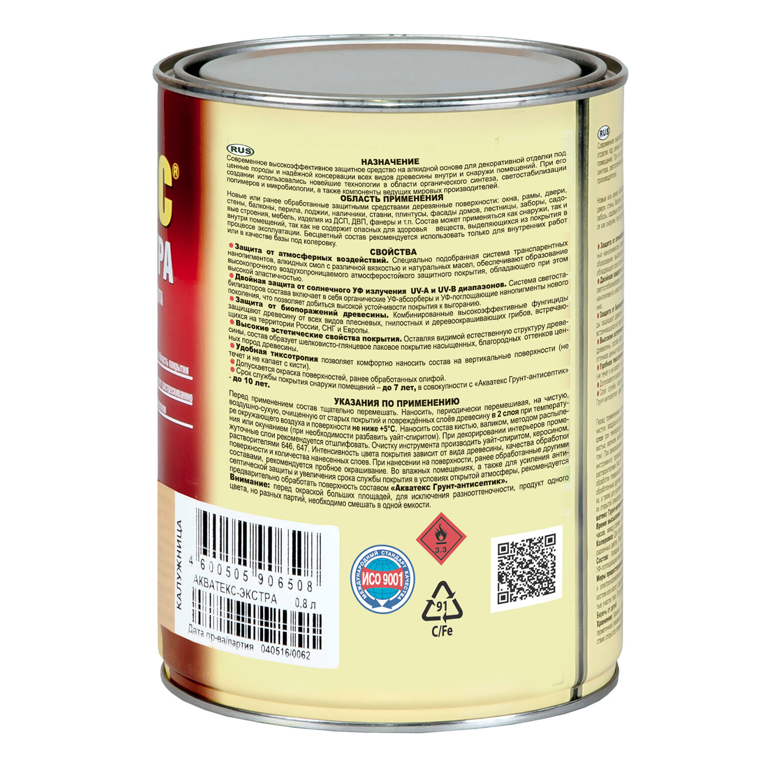 Защитно-декоративное покрытие для дерева Акватекс Экстра 90250, полуглянцевое, 0,8 л, рябина