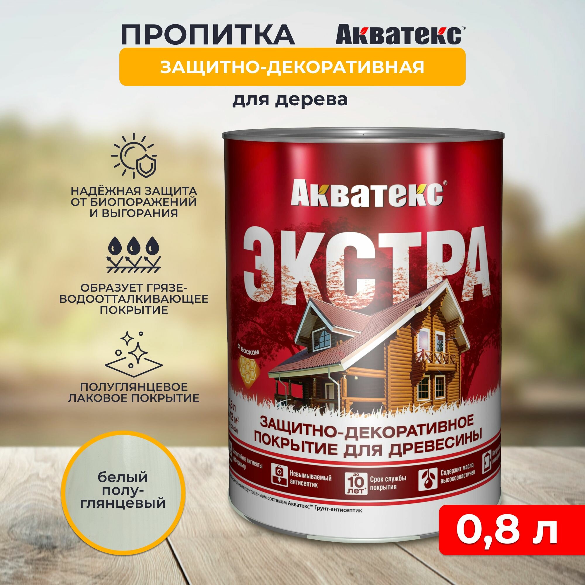 Защитно-декоративная пропитка для дерева Акватекс экстра, пропитка с маслом для дерева белый, 0,8л