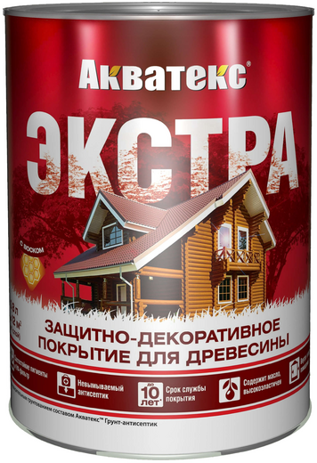 Защитно-декоративное покрытие для дерева Акватекс Экстра 90250, полуглянцевое, 0,8 л, рябина