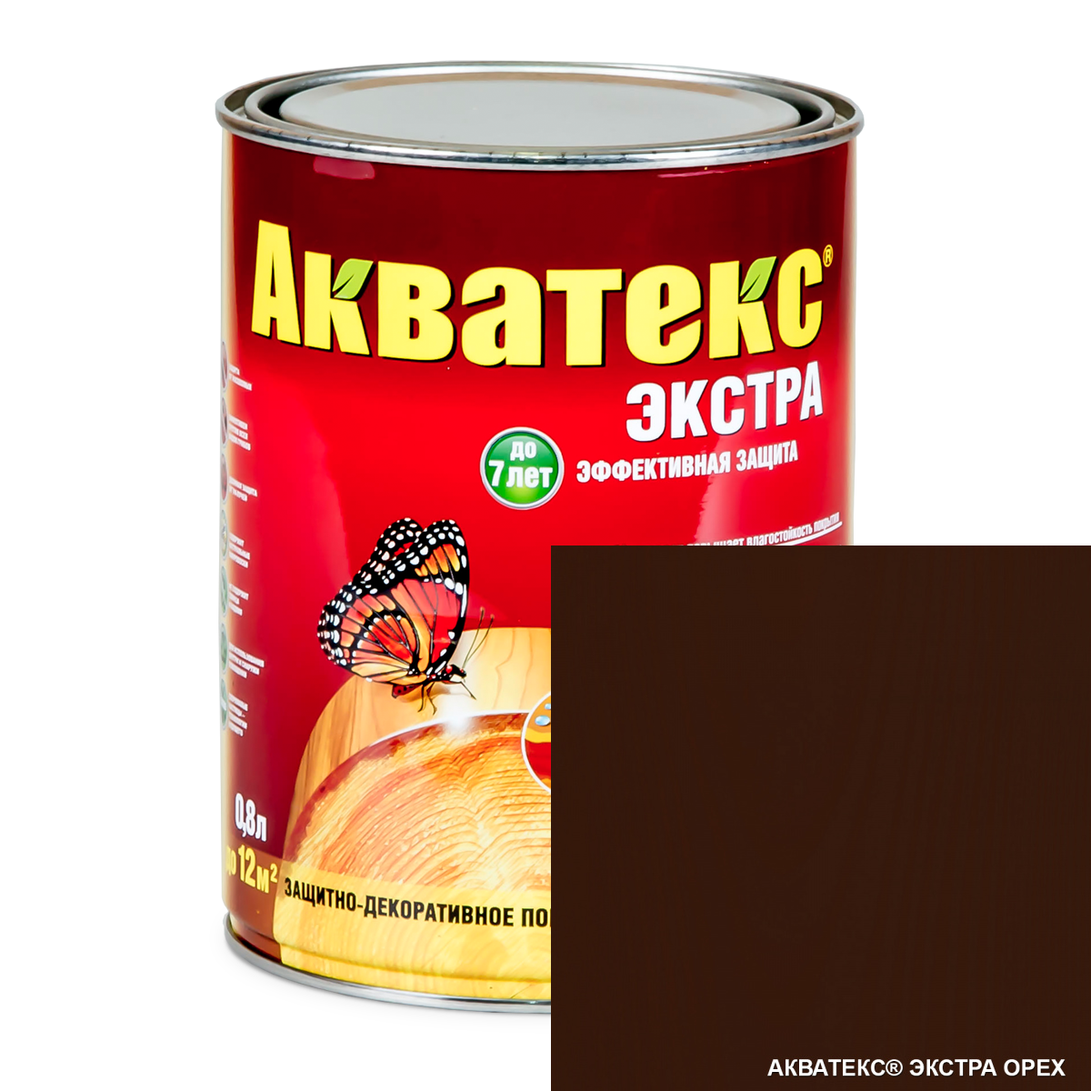 Защитно-декоративная пропитка для дерева Акватекс экстра, пропитка с маслом для дерева орех, 0,8л