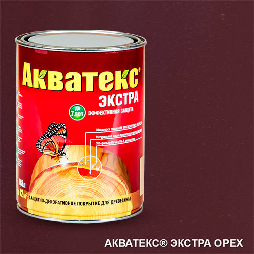 Защитно-декоративное покрытие для дерева Акватекс Экстра 90250, полуглянцевое, 0,8 л, рябина