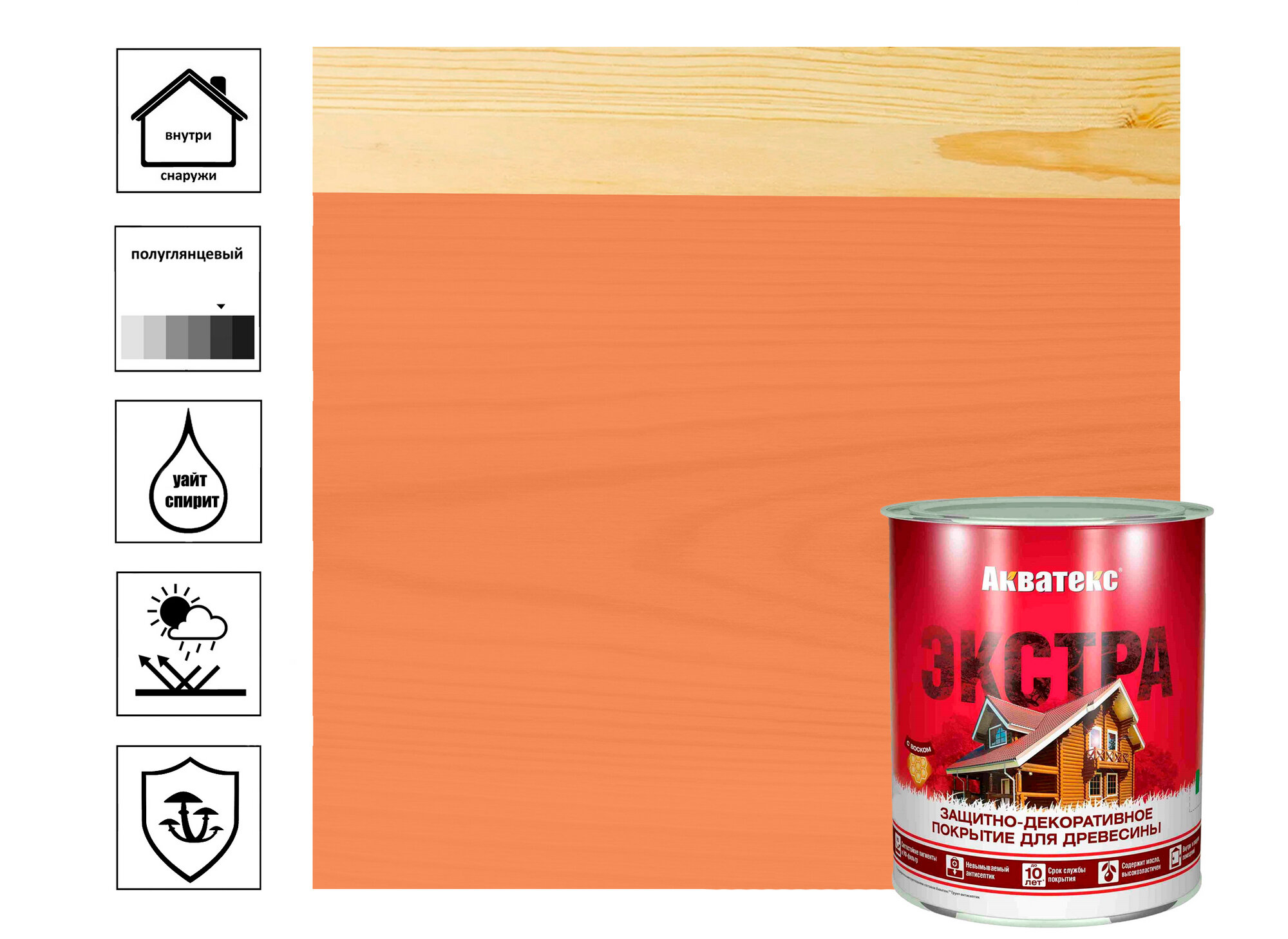Защитно-декоративное покрытие для дерева акватекс экстра алкидное, полуглянцевое, рябина 9л