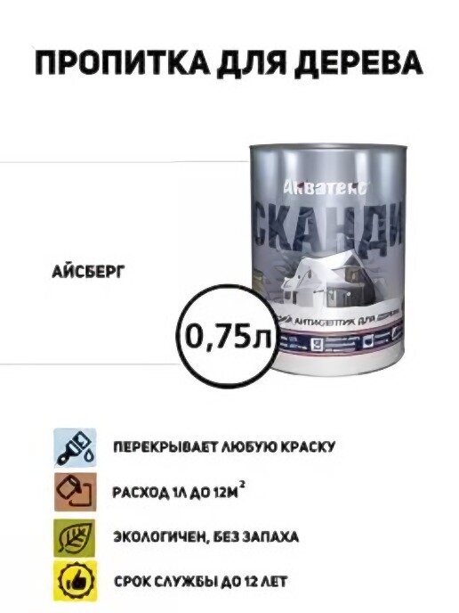 Купить Антисептик кроющий для древесины Акватекс Сканди (0,75л) Айсберг (база А)