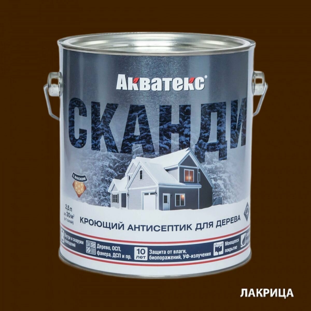 Акватекс сканди Антисептик для дерева, кроющий, полуматовый, лакрица 2,5 л 202912