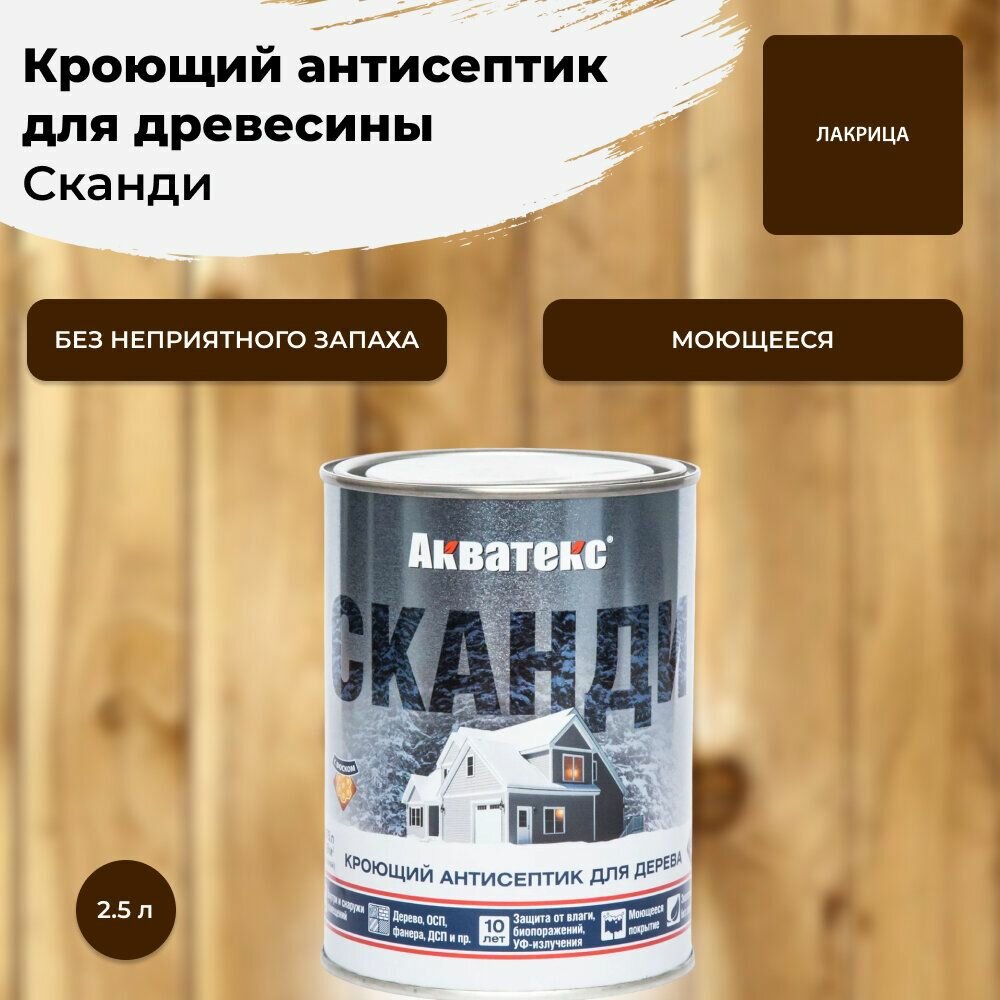 Акватекс сканди Антисептик для дерева, кроющий, полуматовый, лакрица 2,5 л 202912
