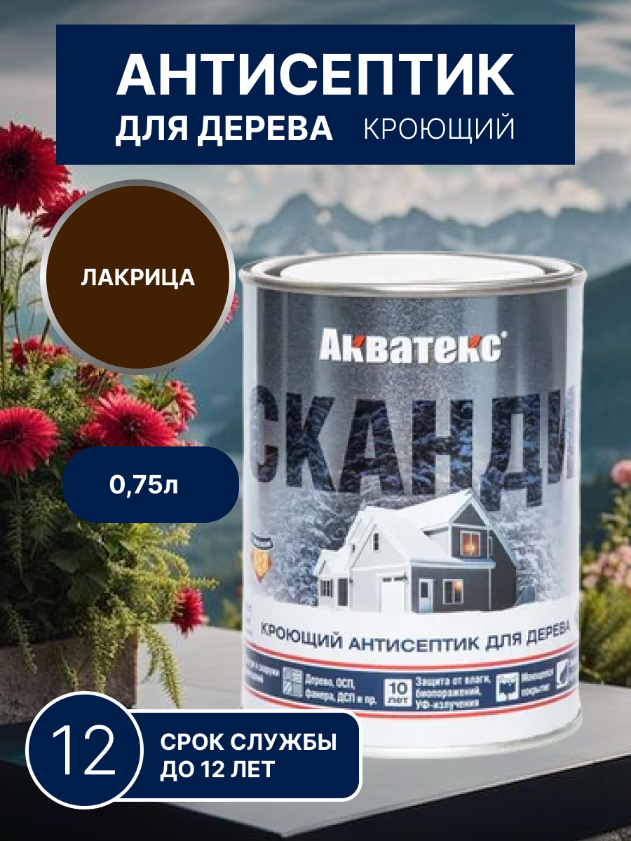 Купить Кроющий антисептик для древесины акватекс сканди (лакрица / 0.75л.)