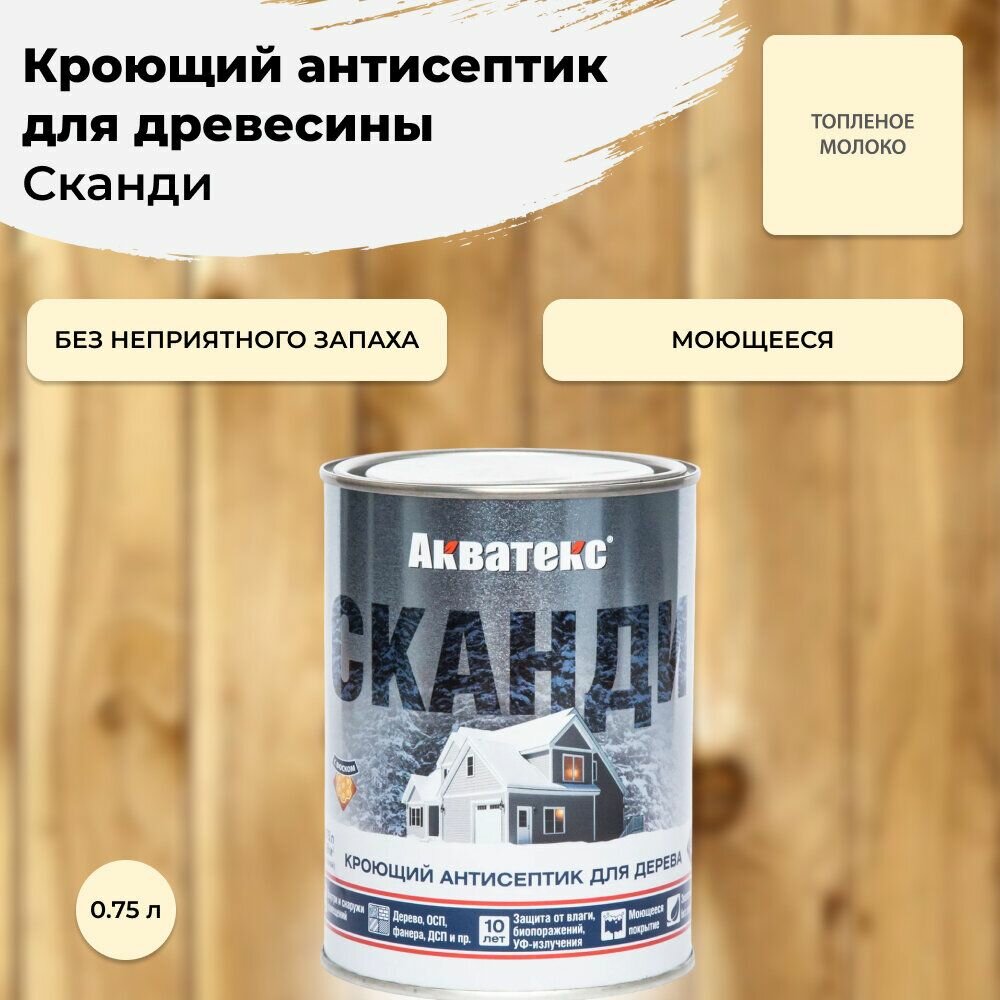 Акватекс сканди кроющий антисептик, топленое молоко, 0,75 л
