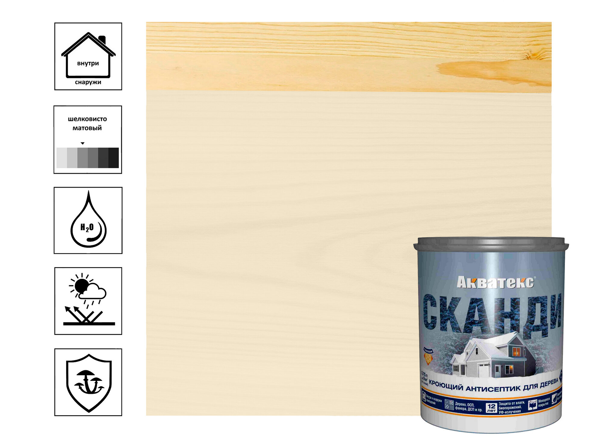 Акватекс Сканди антисептик для древесины кроющий акриловый полуматовый База С 2,5л
