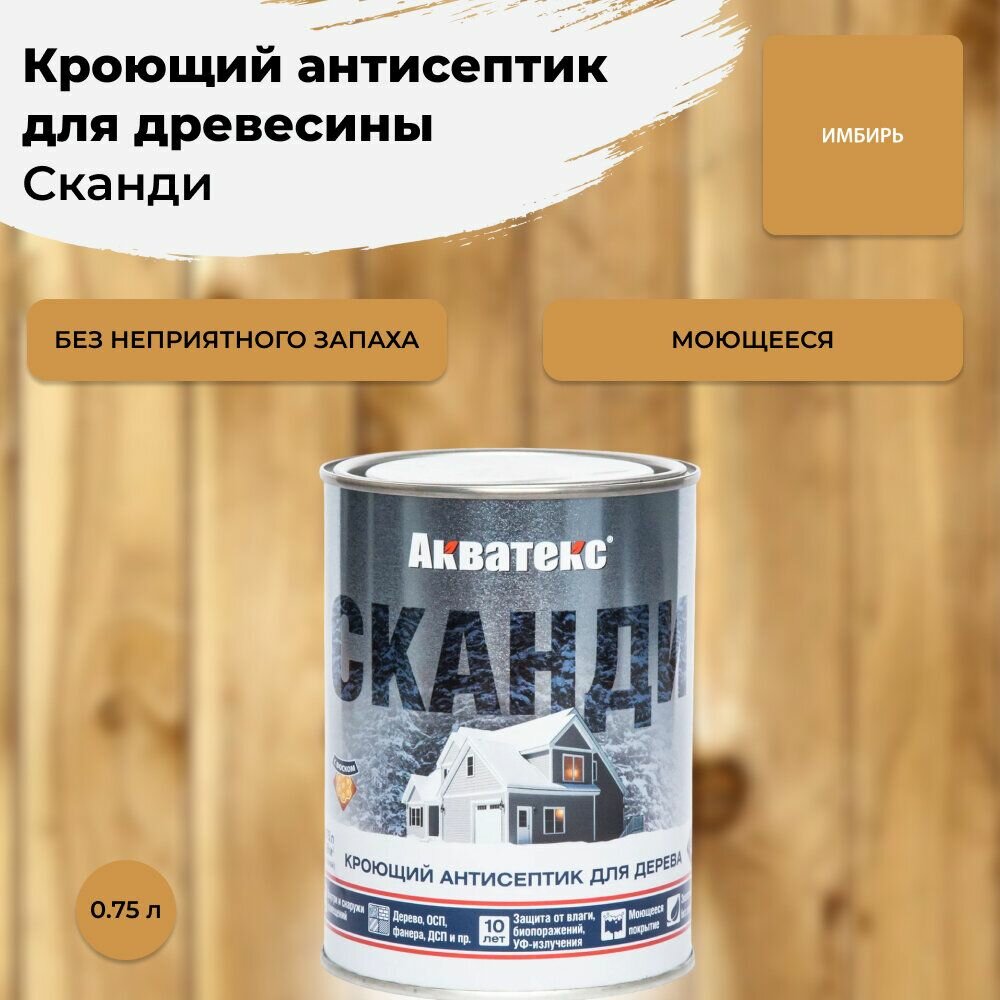 Купить Антисептик кроющий для древесины Акватекс Сканди (0,75л) имбирь