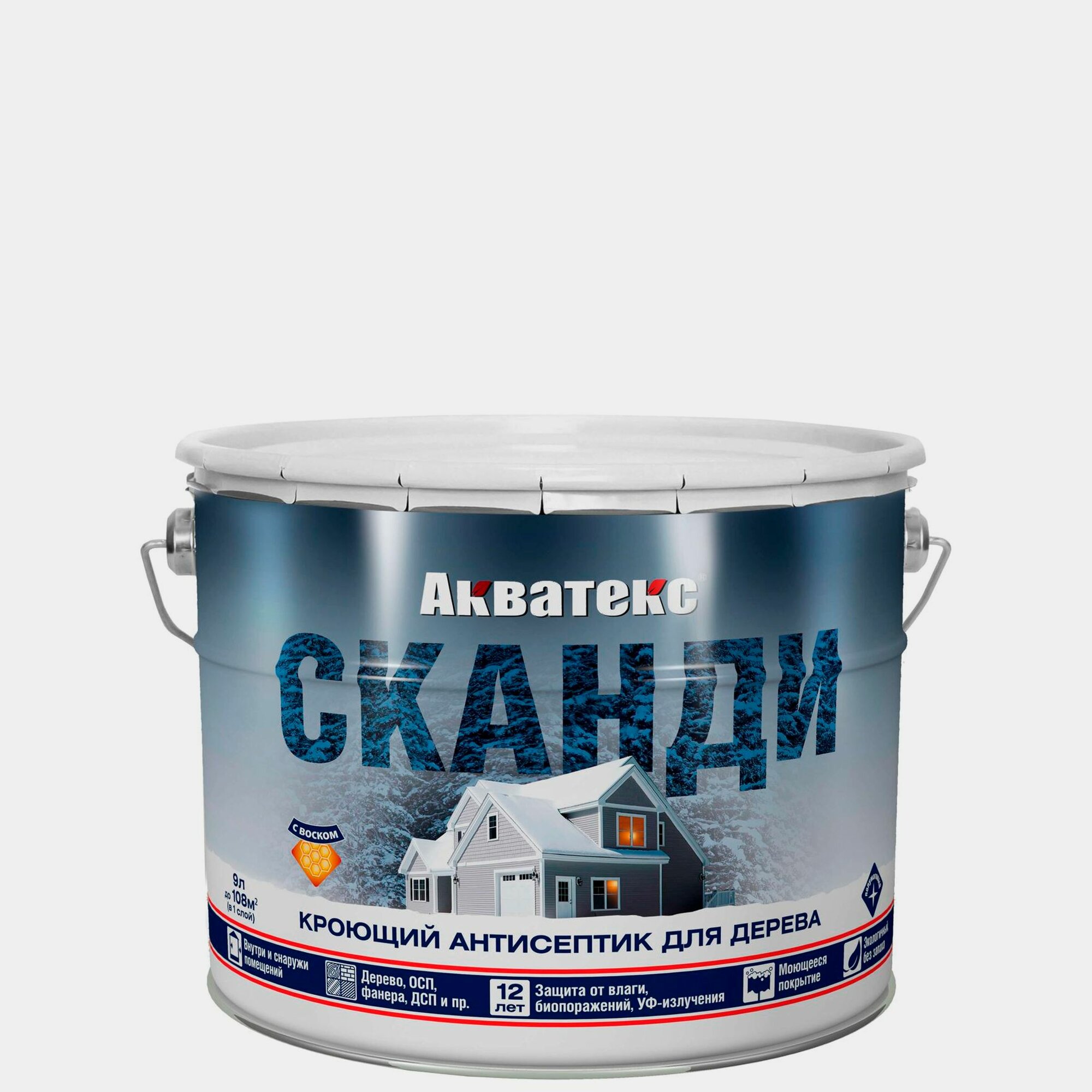 Кроющий антисептик для древесины акватекс Сканди айсберг 9 л