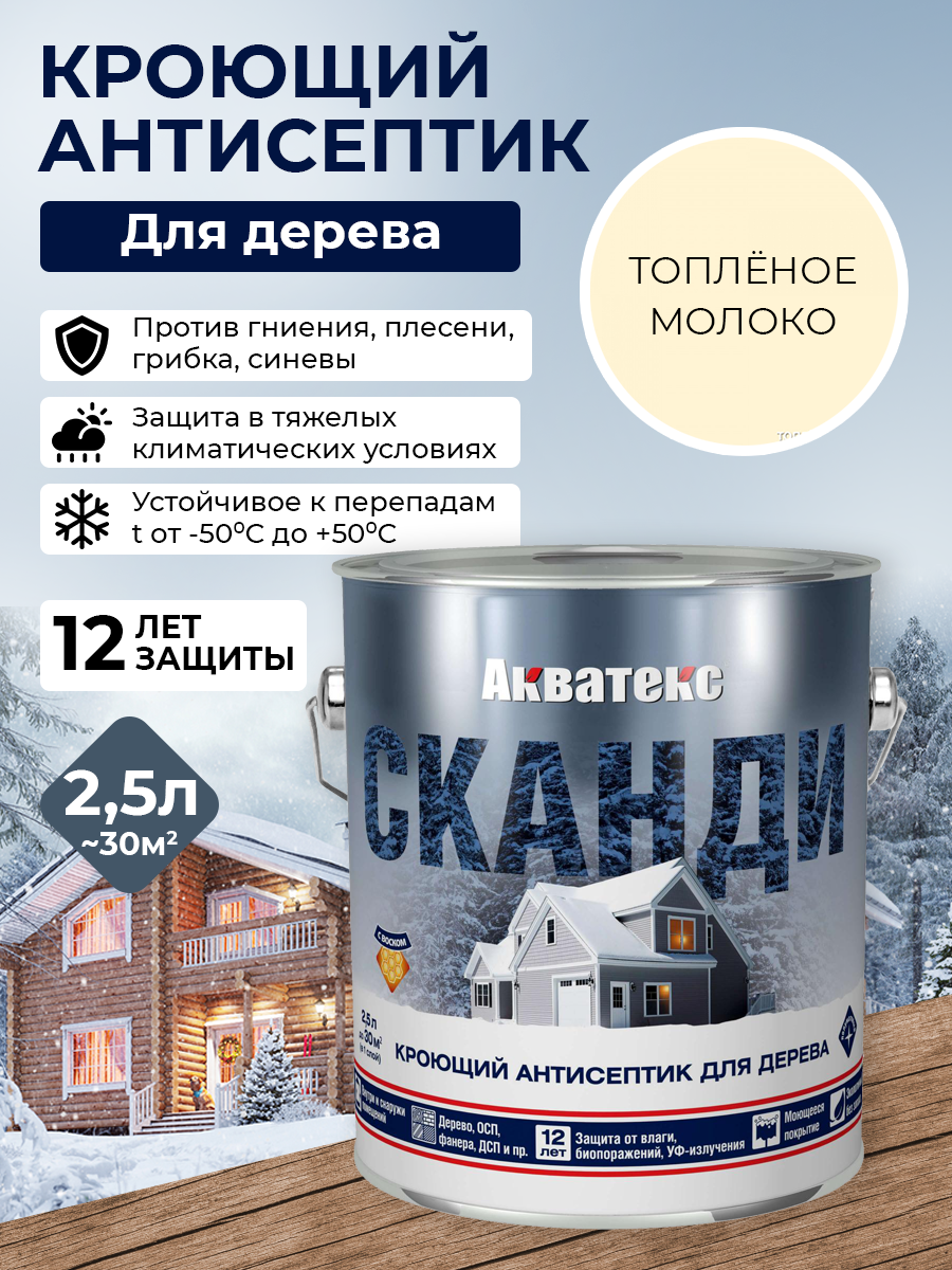 Кроющий антисептик для древесины Акватекс Сканди топленое молоко 2,5л