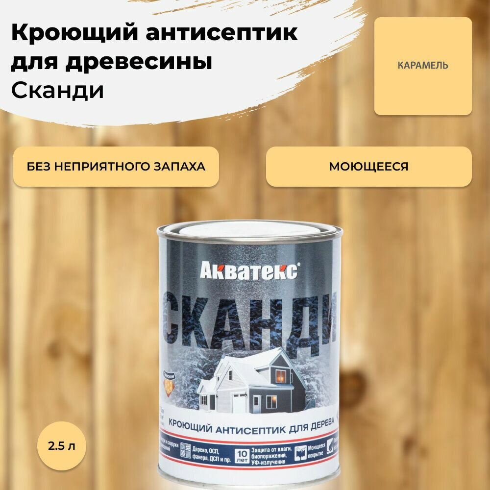Кроющий Антисептик Акватекс Сканди 2.5л Карамель для Древесины.