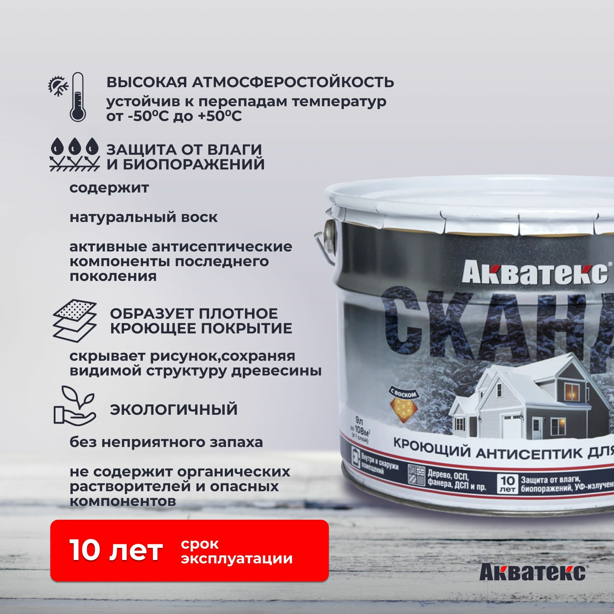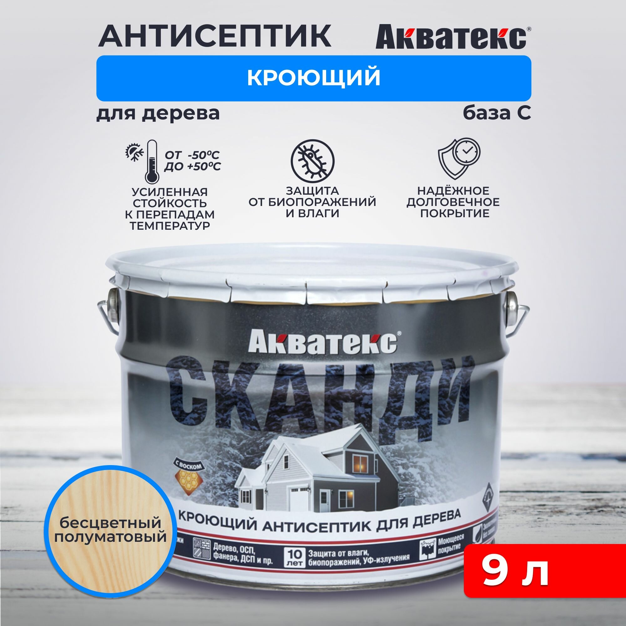 Купить Антисептик для дерева Акватекс Сканди, кроющий, полуматовый, база C, бесцветный, 9 л