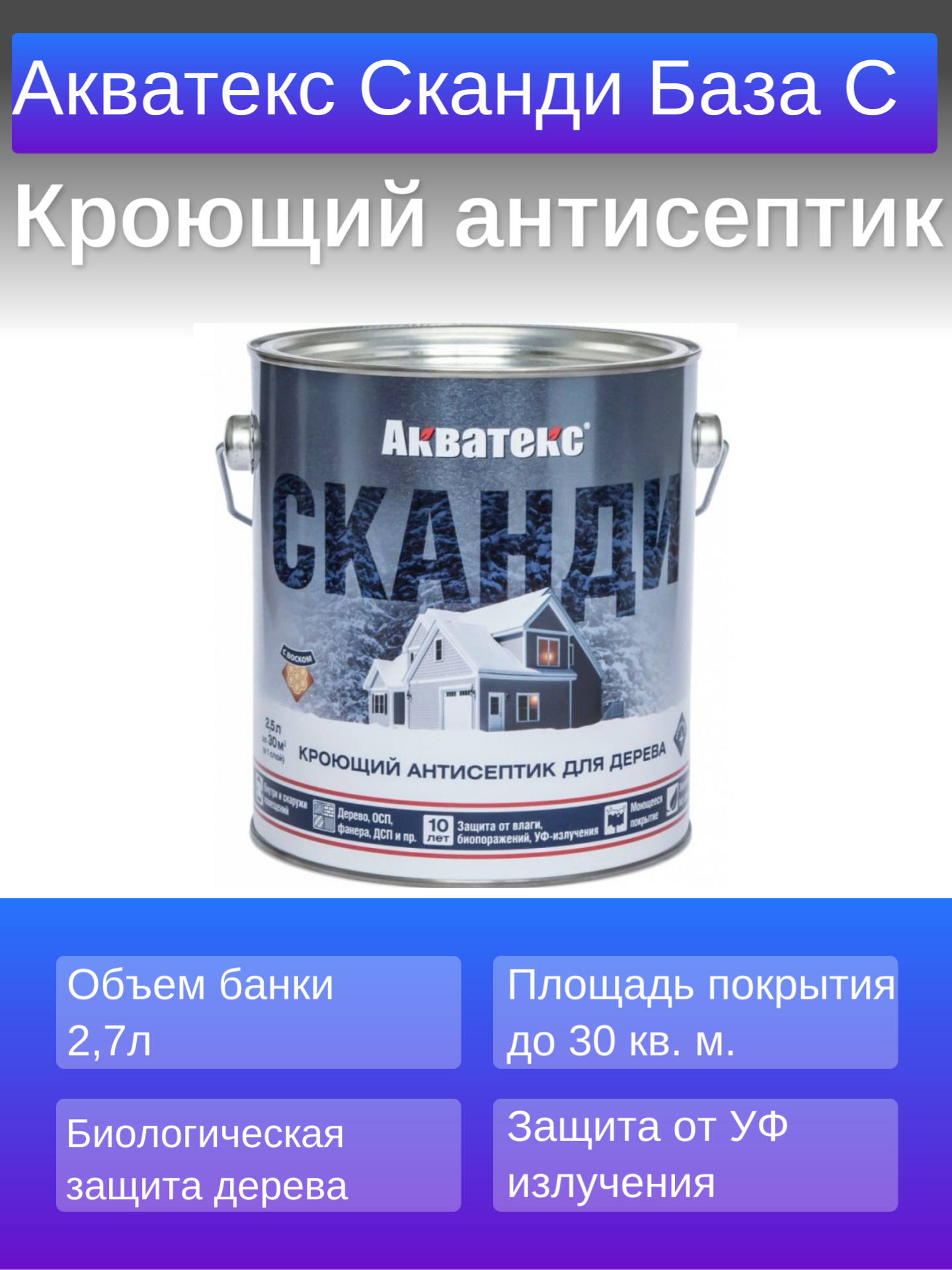 Акватекс Сканди антисептик для древесины кроющий акриловый полуматовый База С 2,5л