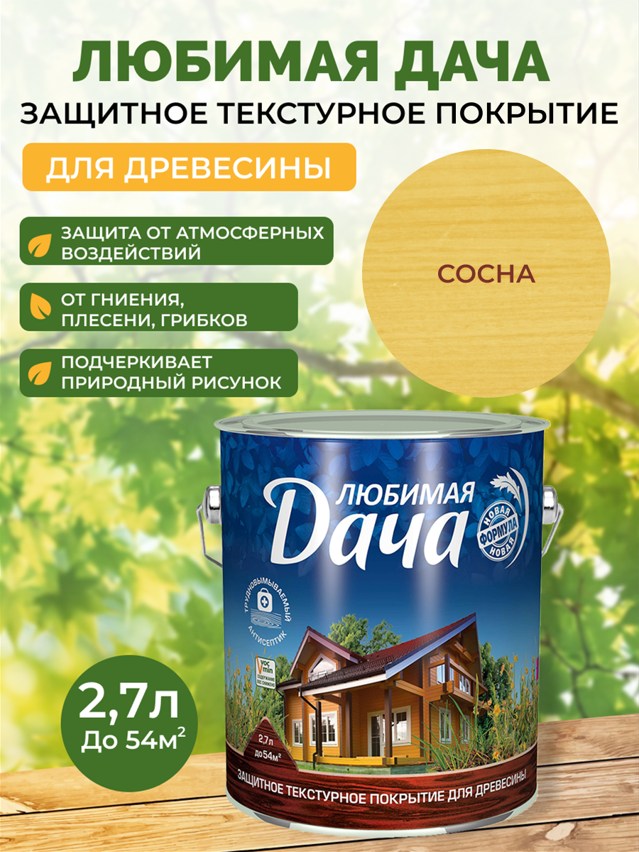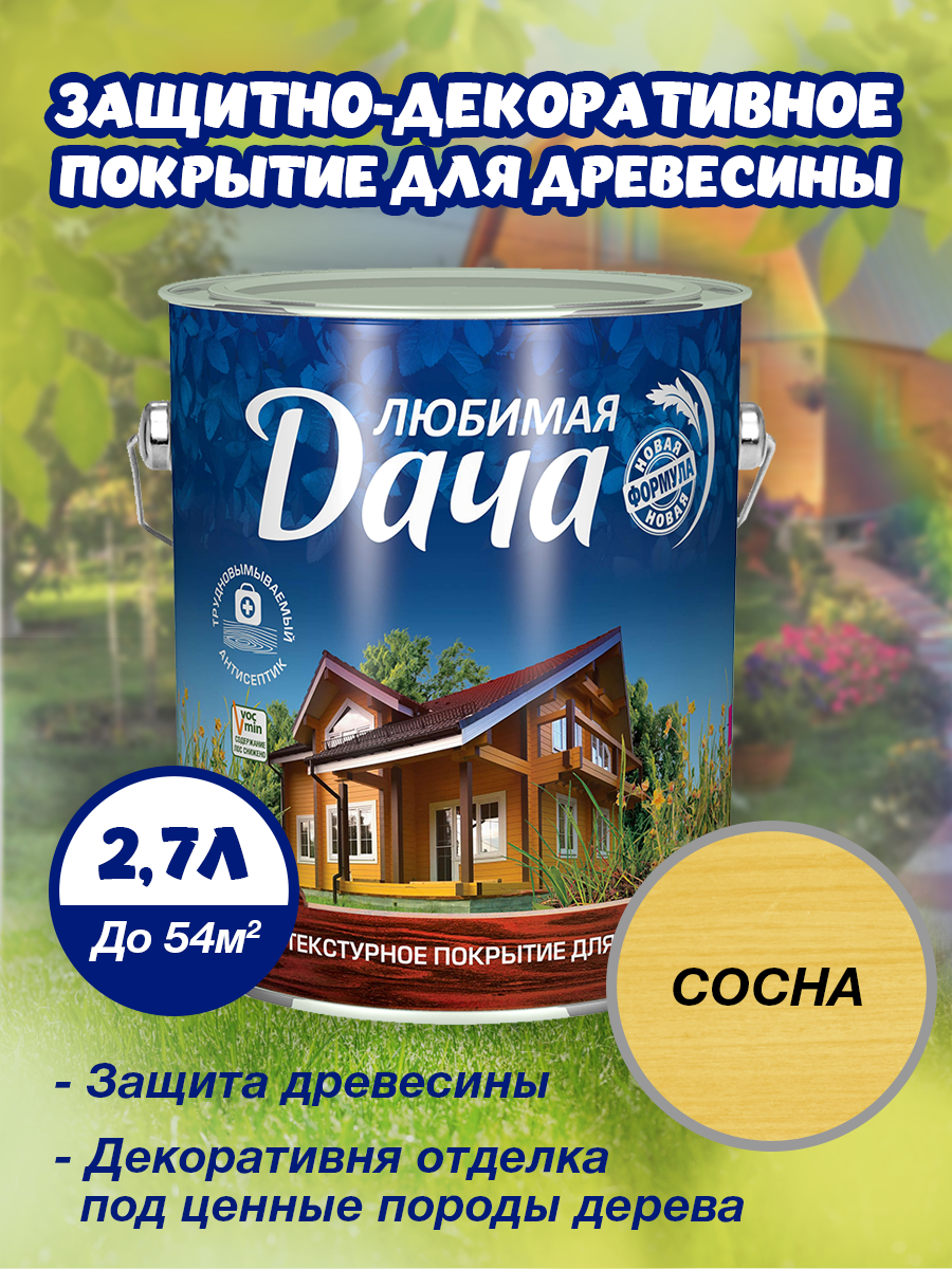 Защитно-декоративное покрытие для дерева Любимая дача, полуматовое, 2,7 л, сосна