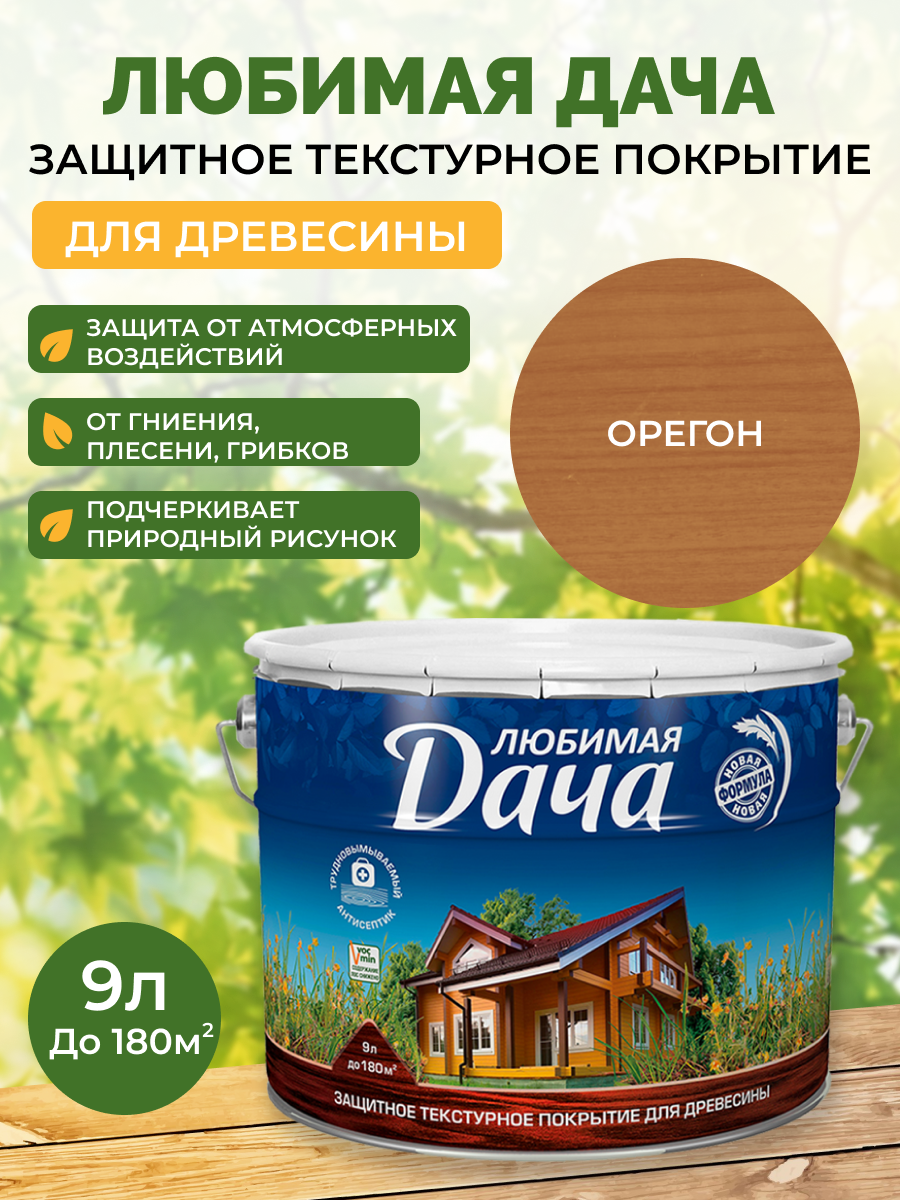 Биоцидная пропитка любимая дача Защитно-декоративное покрытие для древесины, орегон, 9 л