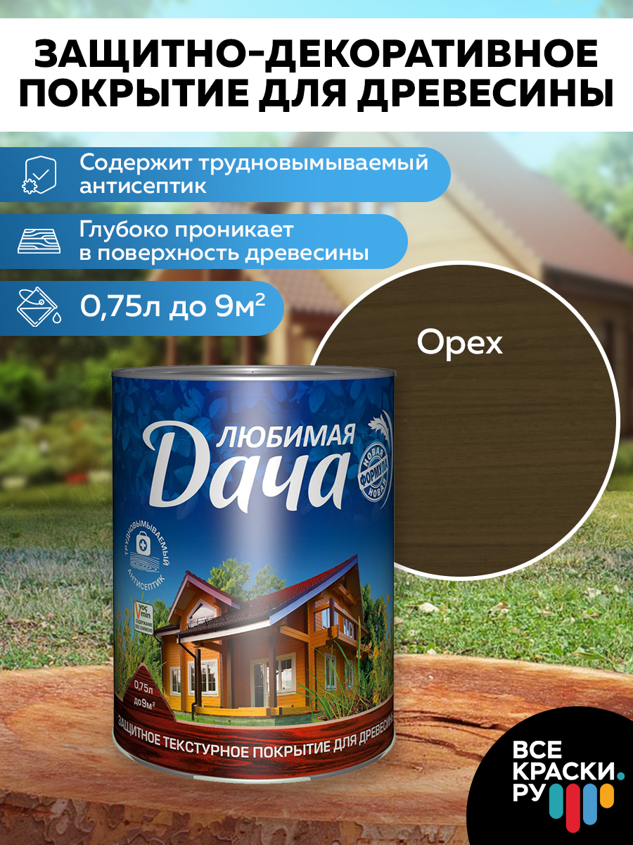Защитно-декоративное покрытие для дерева Любимая Дача , полуматовое, 0,75 л, орех