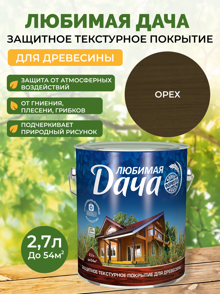 Защитно-декоративное покрытие для древесины Любимая Дача (2,7л), орех