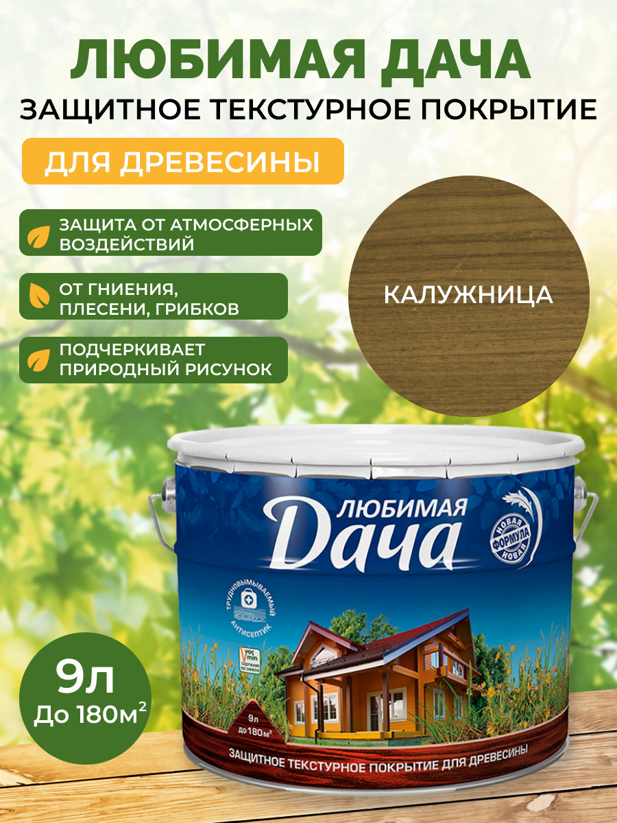Антисептик Любимая Дача 9л Калужница Защитно-Декоративное Покрытие для Древесины.